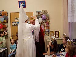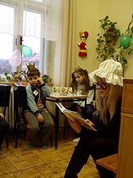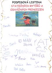 Dopis poslaný všem dětem a knihovnicím, které nocovaly po celé naší republice i ve světě.Moravský Krumlov. Nocuje s námi 23 dětí, z toho 18 princezen a 5 rytířů, pak 3 studentky –Maková panenka, Beruška a Černokněžnice, a 3 sličné knihovničky-Babuška Jaguška, Dvorní dáma a Bílá paní. Nocování jsme zahájili pasováním pana starosty na pohádkového krále, dostal královskou korunu, plášť, žezlo a královskou šerpu s pečetí. Děti si vyzdobily zlaté korunky a hurá do zámeckého parku. Tam na ně čekala pohádková cesta –10 stanovišť s jednotlivými úkoly, které děti plnily –loupání perníčku, přebírání hrachu a fazolí, hledání poztrácených perel na louce, vše vyvrcholilo hledáním pokladu, který si společně se skauty-lesními skřítky opekly nad ohništěm. Za svitu loučí jsme se vrátili zpět do knihovny, kde na nás čekal pohádkový kvíz o Tři zlaté vlasy děda Vševěda, napsali jsme si tajná přání, která jsme si zapečetili, na pohádkovém bále s písničkami z pohádek našly děti Princeznu se zlatou hvězdou na čele. Děti si složily pohádková puzzle, našly dort s Vílí horou od pana Andersena, zahrály si pohádkové loto, promítly si pomocí dětského diaprojektoru pohádky –Křesadlo, Jak si pejsek roztrhal kalhoty, O Šípkové Růžence, Otesánek a při četbě Popletených pohádek od Ivony Březinové jsme pomalu všichni usínali. Pouze jediná bytost, která nespala, byla naše Bílá paní, která nad námi bděla až do rána. Přeposíláme vám pár fotek z nocování, mějte se fajn. Všechny srdečně zdraví knihovničky z Moravského Krumlova