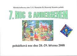 Dne 28. března 2008 se v Městské knihovně v Moravském Krumlově konala již známá „Noc s Andersenem“, která je uspořádaná na počest slavného spisovatele Hanse Christiana Andersena. Na tento večer přišly děti, které se nemohly dočkat, až vstoupí do světa plného pohádek. Ke správným pohádkám také jednoznačně patří pohádkové bytosti – např. pan král, paní královna, ale taky třeba bílá paní, čarodějnice, dvorní dáma, sněhová královna či beruška, se kterými jsme se v knihovně setkali. Na tomto večeru jsme si všichni užili spoustu legrace. V zámeckém parku jsme hráli různé hry a podstoupili i stezku odvahy. Dále jsme si mohli napsat svá přání na papír a zapečetit je. Nakonec jsme hledali ukrytý poklad, o kterém nám pověděla bílá paní.