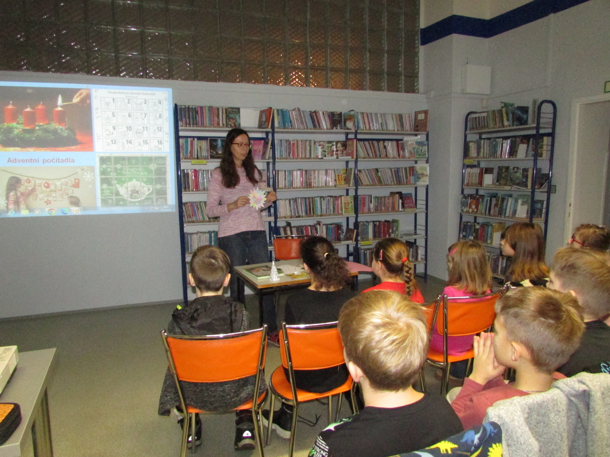 Před Vánoci jsme navštívili knihovnu v Moravském Krumlově, kde nám paní knihovnice Dvořáková velmi pěkně přiblížila adventní dobu a tradice Vánoc. Měla připravené kvízy a hádanky, děti spolupracovaly.