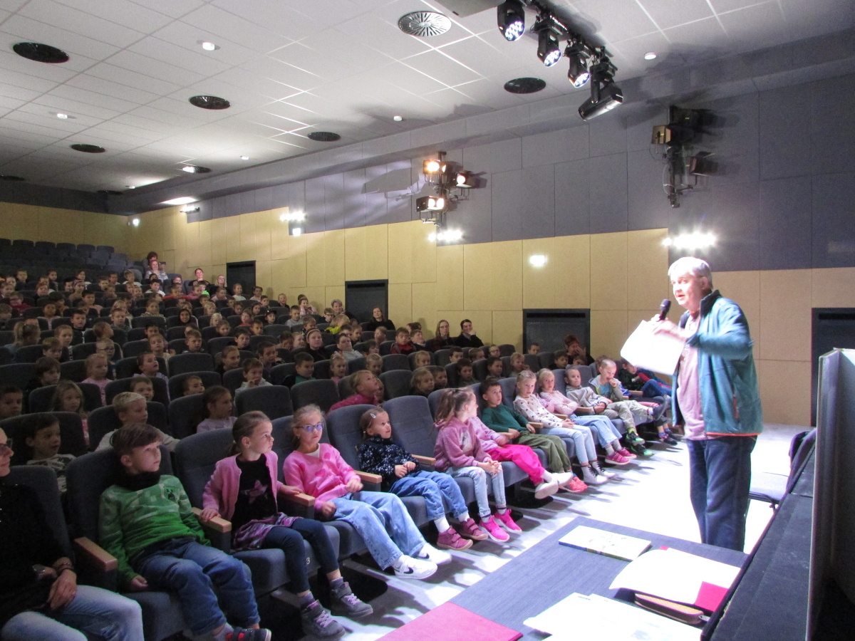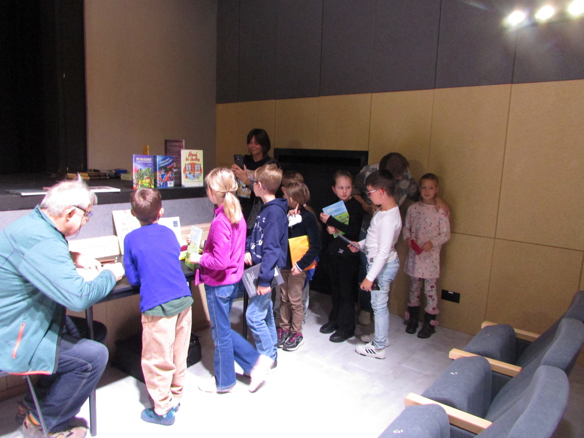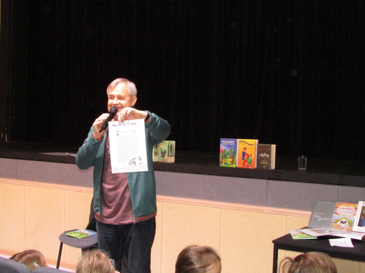 Některé knihy nám i sám četl, byl u toho velmi vtipný. Celou návštěvu nám povídal a někoho z nás také vyvolal, aby četl.