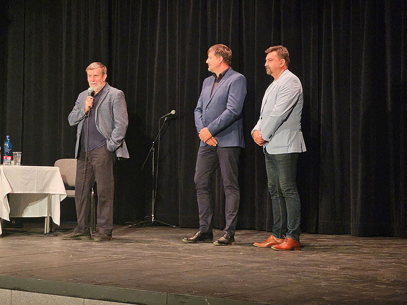 Ve čtvrtek 9. září jsme měli možnost navštívit nové kulturní a kreativní centrum bývalého kinosálu a osobně se setkat s renomovaným spisovatelem panem Vlastimilem Vondruškou. Knihy tohoto autora jsou u čtenářů ve velké oblibě, zvláště jeho historické krimi. Dozvěděli jsme se, že již od mládí měl hluboký zájem zejména o starší historii, že působil v Československé akademii věd, posléze pak jako ředitel v Národním muzeu v Praze. Ne každý ovšem tušil, že byl také úspěšným podnikatelem, který založil sklárnu Královská huť v Doksech. Je přesvědčený, že na své dějiny a předky nesmíme zapomínat, abychom neztratili cestu k pochopení dneška a sebe samotných. Dosud napsal více než padesát vědeckých studií a článků o dějinách hmotné kultury, mnoho knih vědeckých a populárně naučných, bezmála sto historických románů a několik knih pro mládež. V současné době patří pan Vondruška mezi nejčtenější české autory, což dokazoval zaplněný přednáškový sál. Ve foyer byla možnost zakoupení autorových knih z nakladatelství Moba spojená s ochutnávkou vína z Vinařství Pánů z Lipé. První díl trilogie Dědictví Templářů, byl náležitě pokřtěn a my jsme měli skvělou příležitost dozvědět se více o jeho spisovatelské činnosti, ale také poznat další knihu, která je novinkou na českém trhu. Milým poděkováním byla zaplněná kasička na dárcovství kostní dřeně.