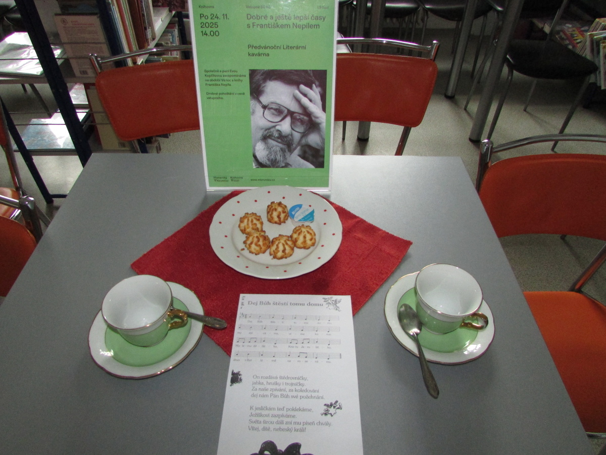Dvacátého čtvrtého listopadu proběhla v Městské knihovně Moravský Krumlov další literární kavárna, tentokrát s názvem: Dobré a ještě lepší časy s Františkem Nepilem. Toto setkání bylo speciální a mělo své kouzlo, jelikož jsme nejenže více poznali dalšího skvělého autora, ale také na nás dýchla předvánoční atmosféra, protože kavárna se tentokrát oblékla do vánočního "kabátku."