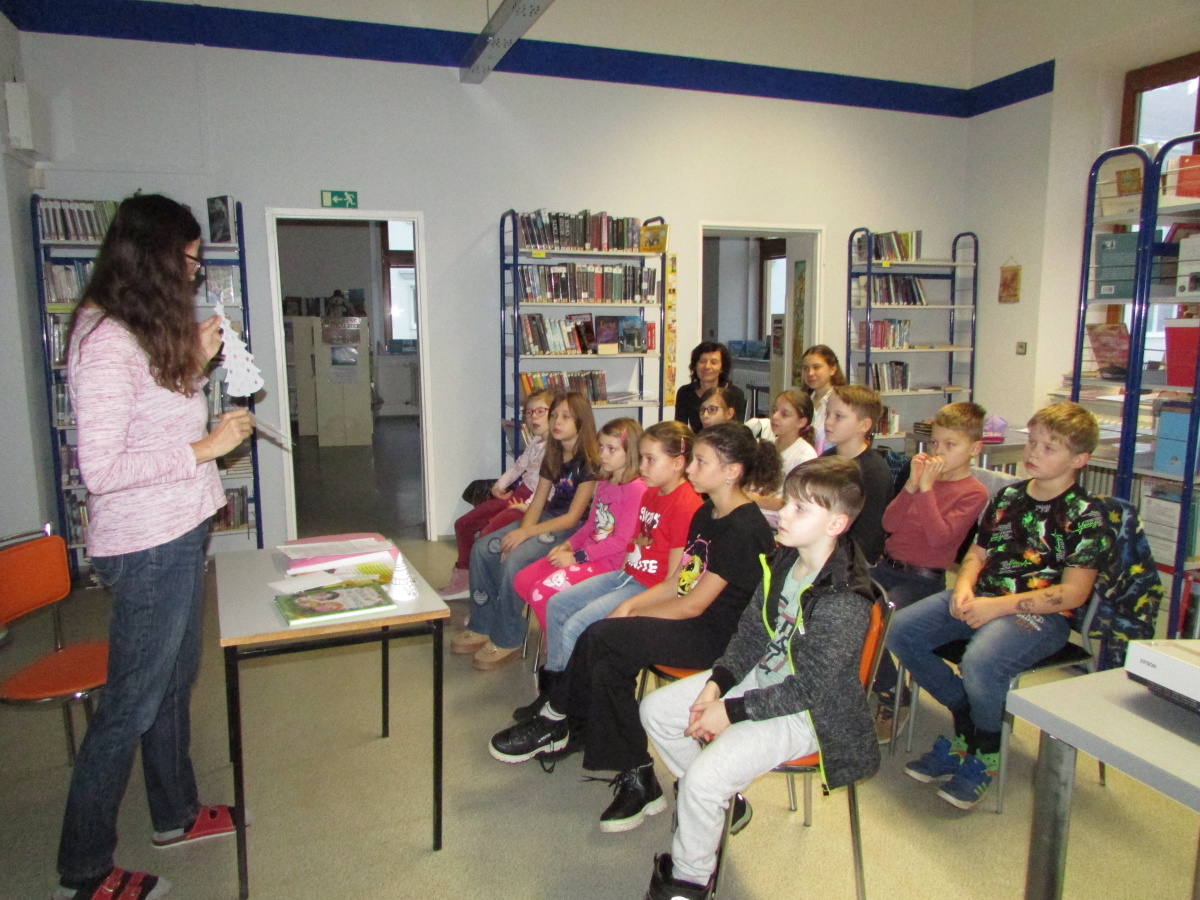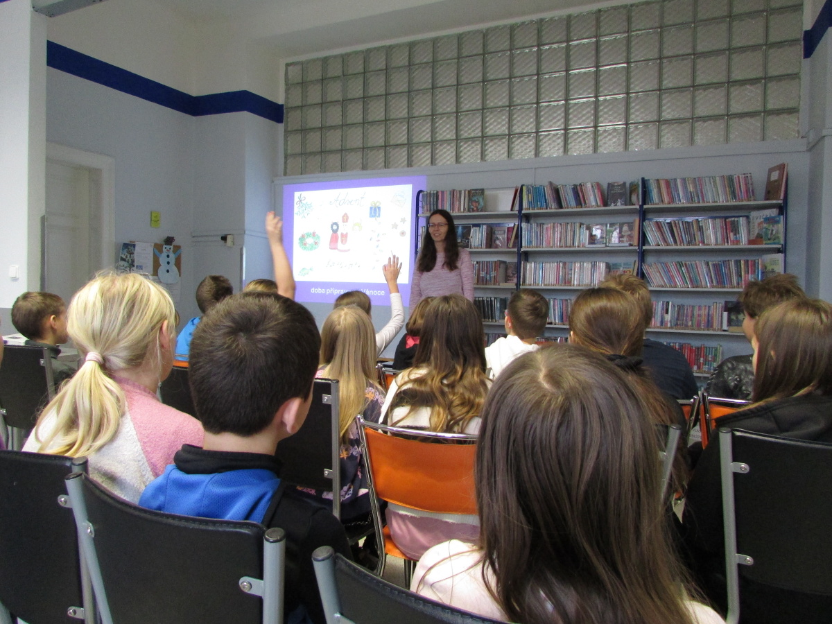 Před Vánoci jsme navštívili knihovnu v Moravském Krumlově, kde nám paní knihovnice Dvořáková velmi pěkně přiblížila adventní dobu a tradice Vánoc. Měla připravené kvízy a hádanky, děti spolupracovaly.