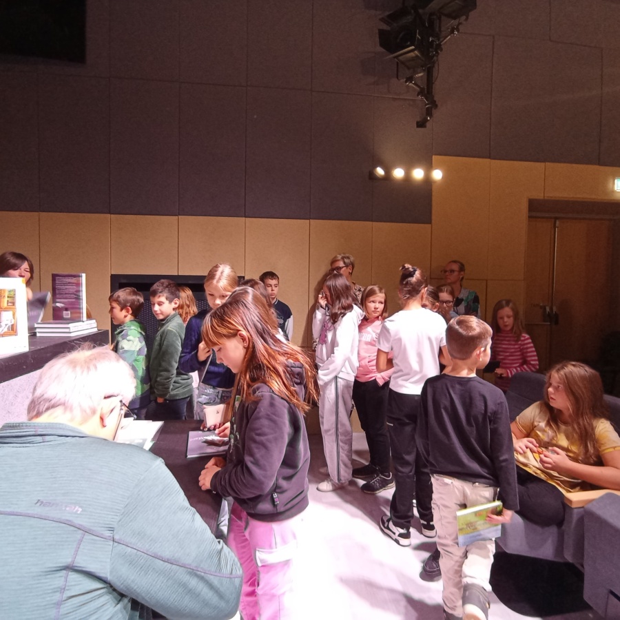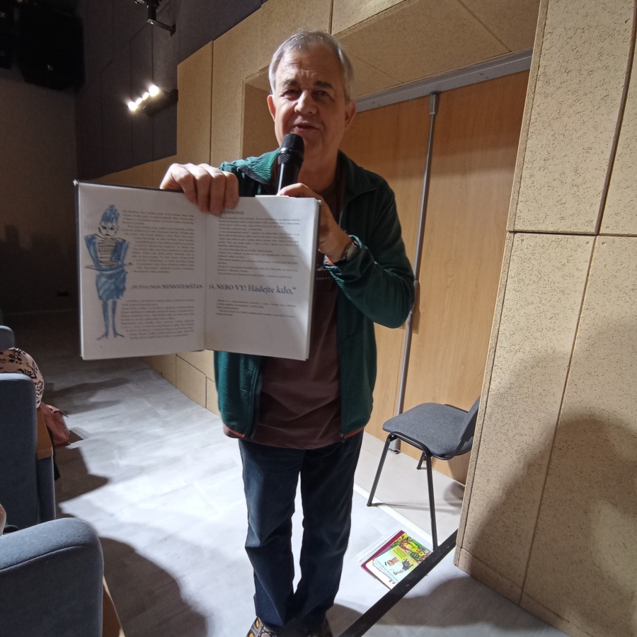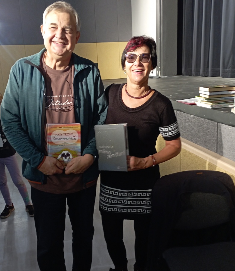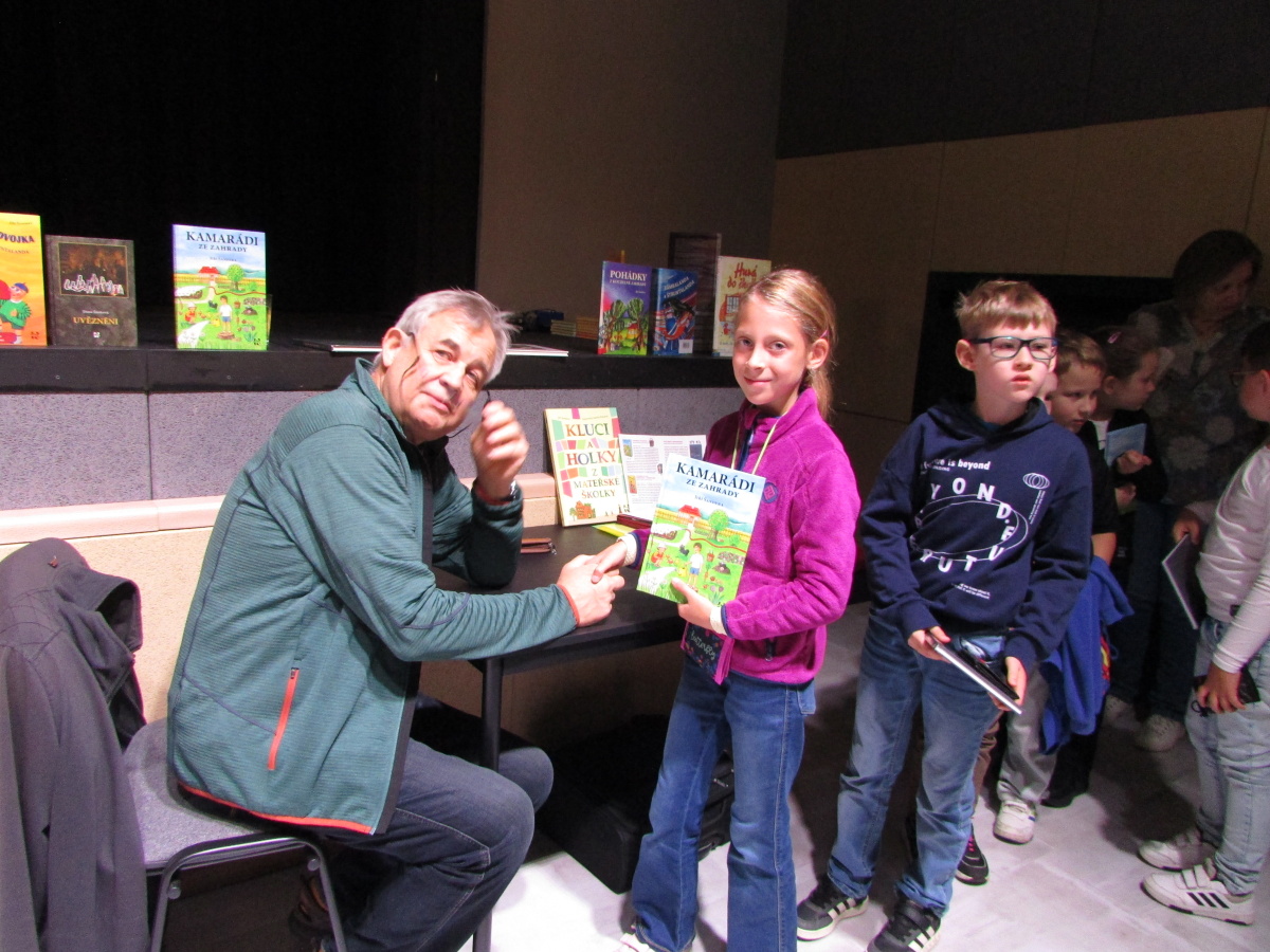 Pan spisovatel nám ukazoval knížky, ktere napsal a sám si je také ilu stroval.
