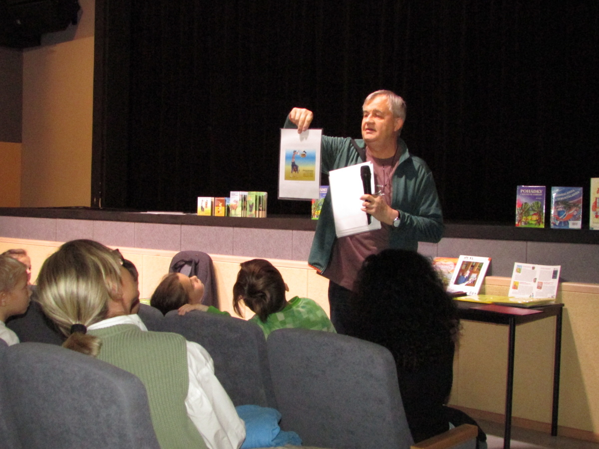 Některé knihy nám i sám četl, byl u toho velmi vtipný. Celou návštěvu nám povídal a někoho z nás také vyvolal, aby četl.