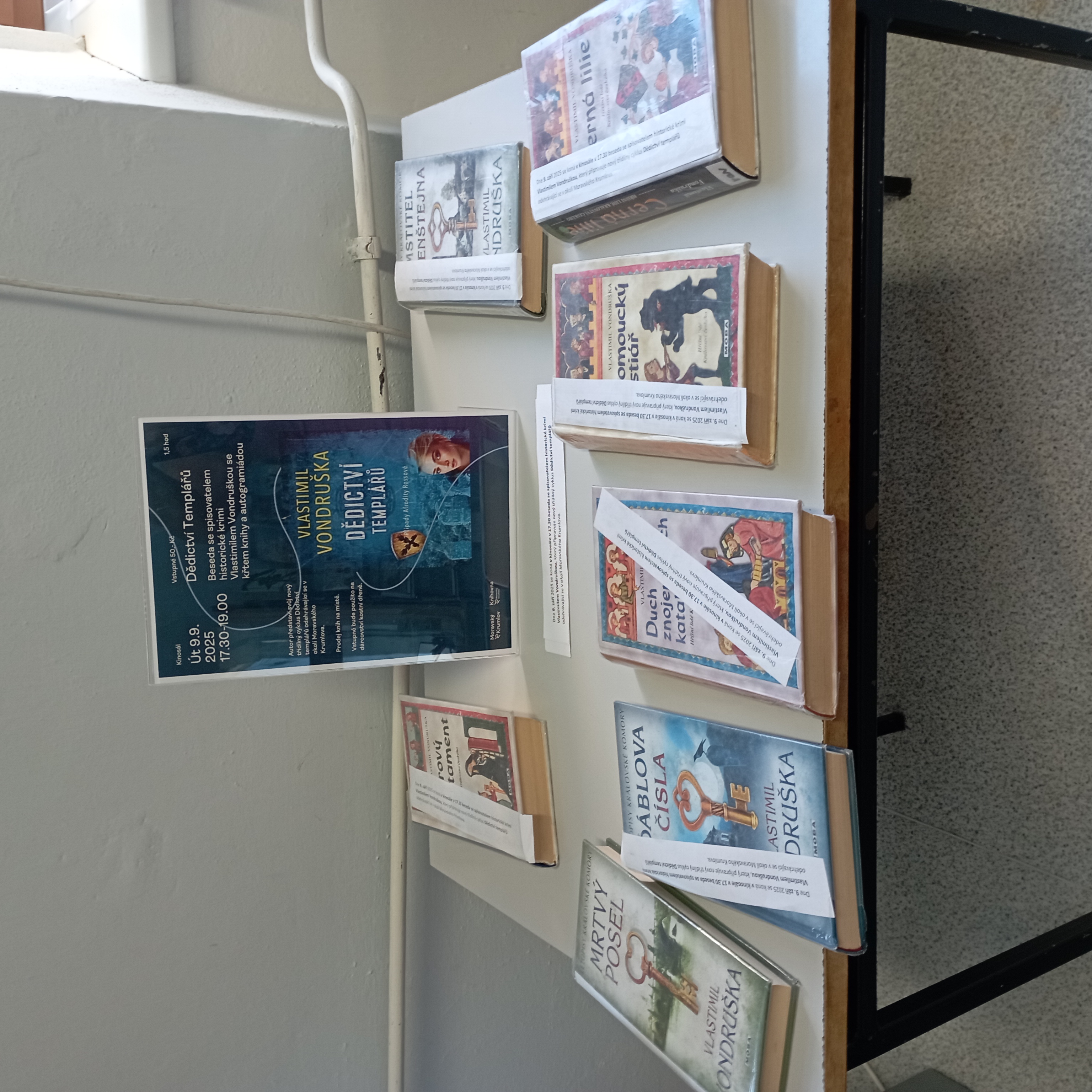 Ve čtvrtek 9. září jsme měli možnost navštívit nové kulturní a kreativní centrum bývalého kinosálu a osobně se setkat s renomovaným spisovatelem panem Vlastimilem Vondruškou. Knihy tohoto autora jsou u čtenářů ve velké oblibě, zvláště jeho historické krimi. Dozvěděli jsme se, že již od mládí měl hluboký zájem zejména o starší historii, že působil v Československé akademii věd, posléze pak jako ředitel v Národním muzeu v Praze. Ne každý ovšem tušil, že byl také úspěšným podnikatelem, který založil sklárnu Královská huť v Doksech. Je přesvědčený, že na své dějiny a předky nesmíme zapomínat, abychom neztratili cestu k pochopení dneška a sebe samotných. Dosud napsal více než padesát vědeckých studií a článků o dějinách hmotné kultury, mnoho knih vědeckých a populárně naučných, bezmála sto historických románů a několik knih pro mládež. V současné době patří pan Vondruška mezi nejčtenější české autory, což dokazoval zaplněný přednáškový sál. Ve foyer byla možnost zakoupení autorových knih z nakladatelství Moba spojená s ochutnávkou vína z Vinařství Pánů z Lipé. První díl trilogie Dědictví Templářů, byl náležitě pokřtěn a my jsme měli skvělou příležitost dozvědět se více o jeho spisovatelské činnosti, ale také poznat další knihu, která je novinkou na českém trhu. Milým poděkováním byla zaplněná kasička na dárcovství kostní dřeně.